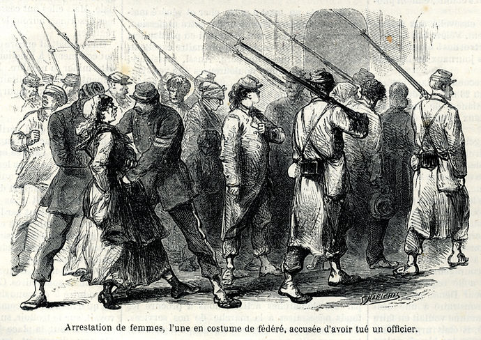 Arrestation de femmes, l’une en costume de fédéré, accusée d’avoir tué un officier